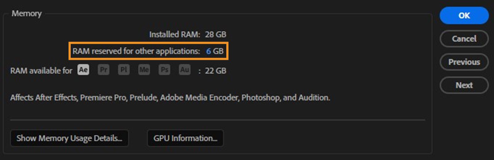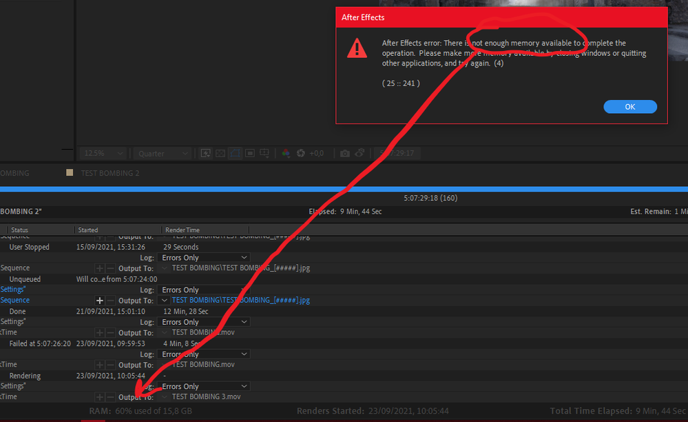 After Effects 2018 đôi khi báo lỗi memory dù máy còn RAM rảnh. Điều này do cách phần mềm quản lý bộ nhớ.
