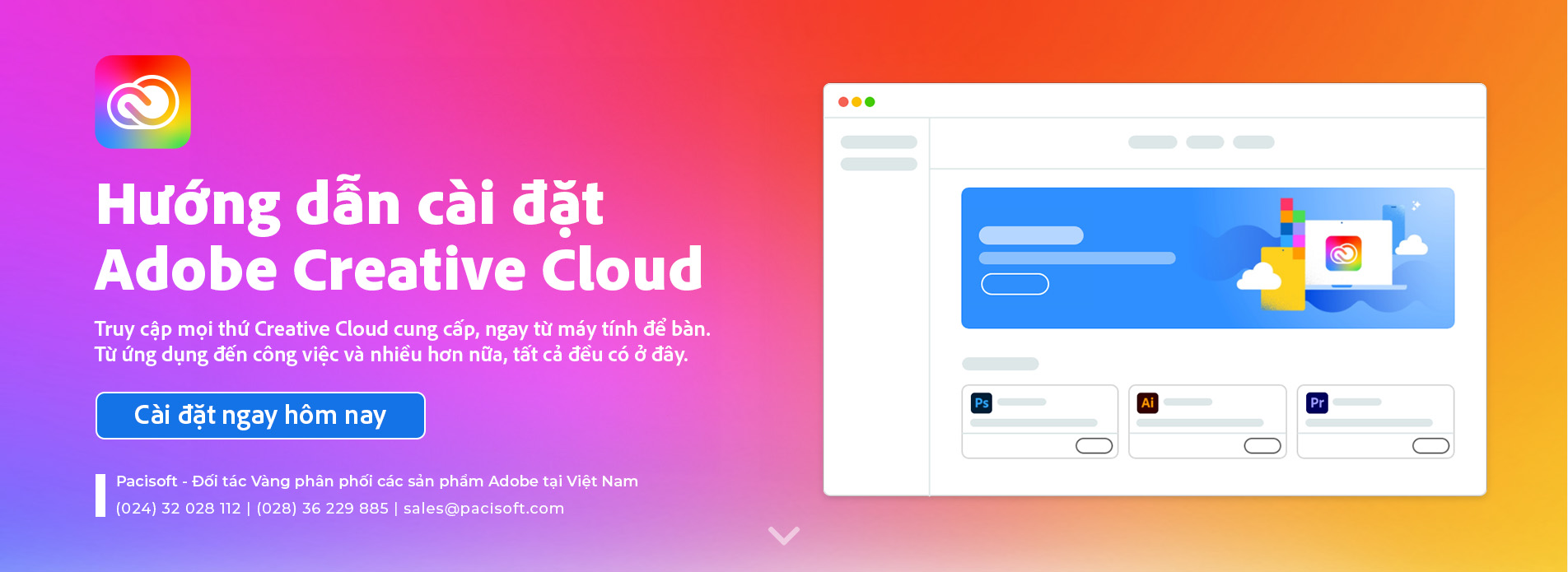 Chạy file setup và làm theo hướng dẫn. Adobe Creative Cloud sẽ tự động: