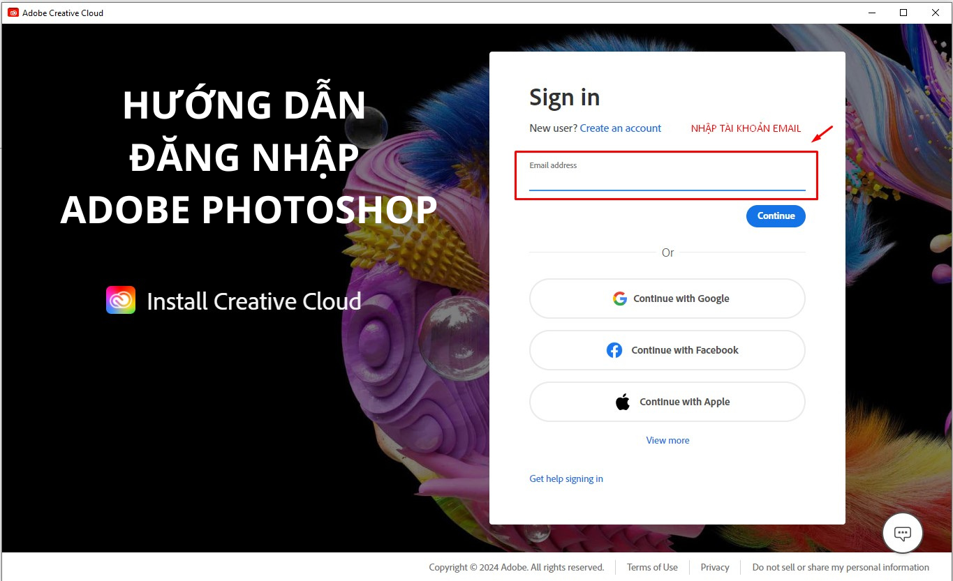 Bước 2: Đăng nhập tài khoản Adobe hoặc tạo tài khoản mới
