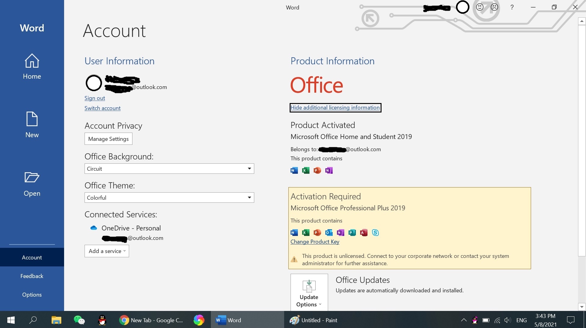 • Home & Business: Word, Excel, PowerPoint, Outlook, OneNote