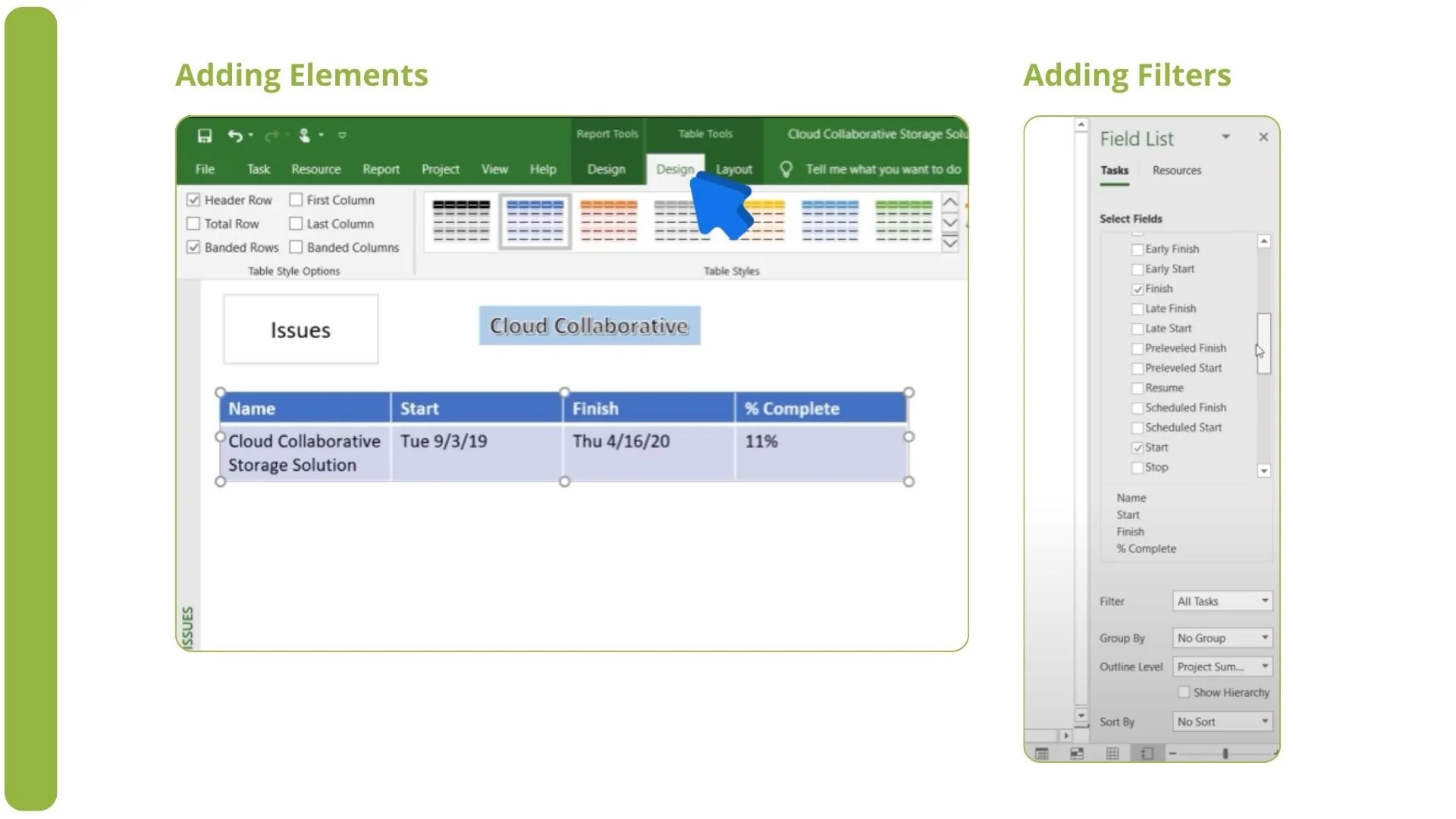 Các template có sẵn: Project Overview, Critical Tasks, Milestone Report, Budget Report và còn nhiều nữa!