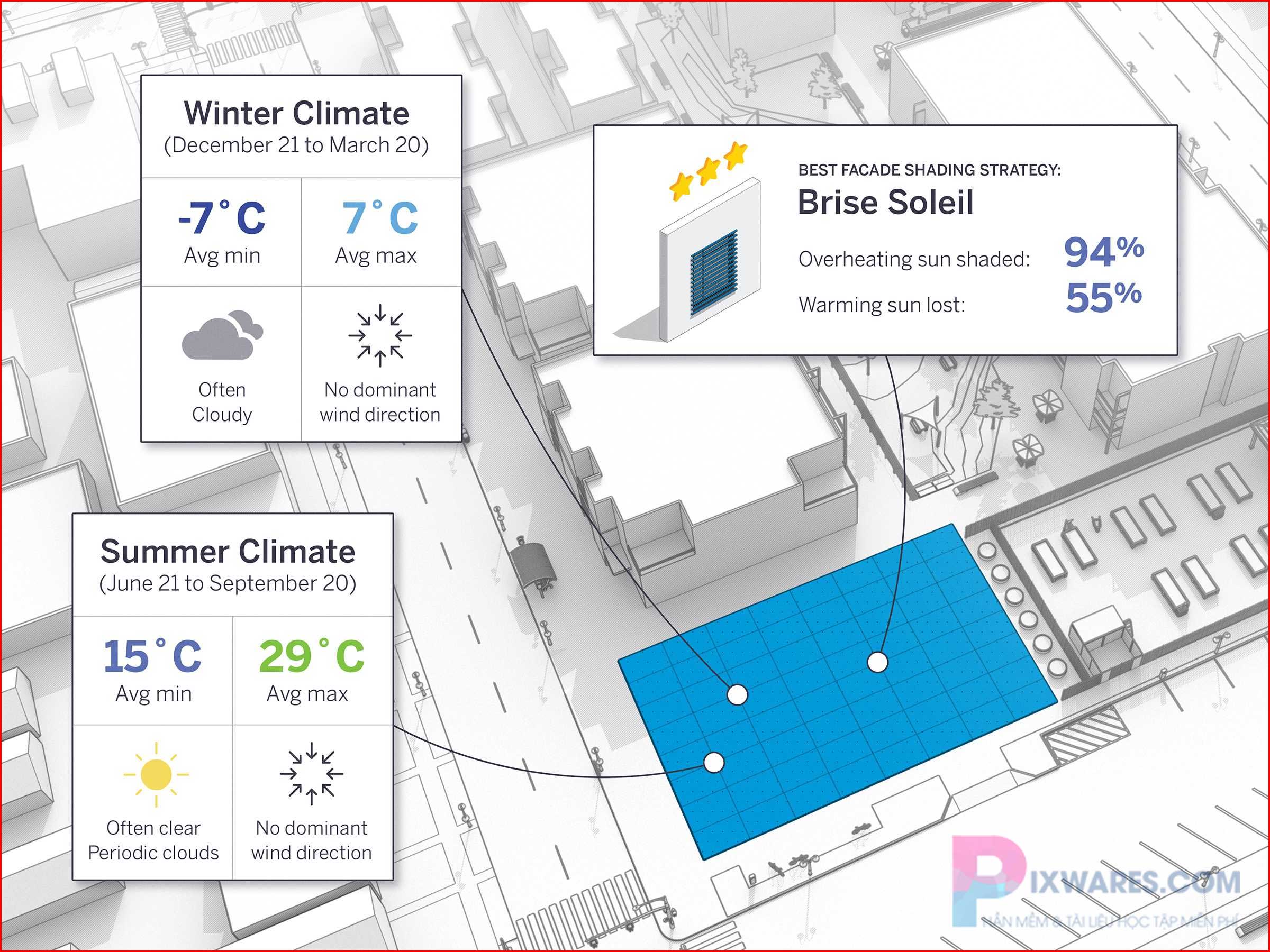 PreDesign trong SketchUp Pro 2021 "ngon lành cành đào" với khả năng phân tích điều kiện mặt trời, gió, và khí hậu tại địa điểm xây dựng. Tính năng này giúp kiến trúc sư đưa ra quyết định thiết kế phù hợp ngay từ giai đoạn đầu. Không còn phải đoán mò hay tính toán phức tạp nữa!